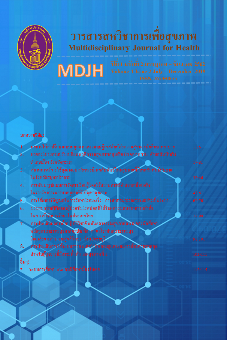 ประสบการณ์ชีวิตของผู้ป่วยวัณโรคปอดที่ได้รับผลกระทบจากความล่าช้าในการเข้ารับการรักษา ประเทศไทย