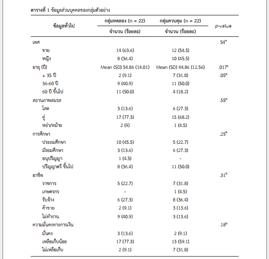 ผลการเตรียมผู้ป่วยก่อนการฝังเข็มร่วมกับการใช้สุคนธบำบัดต่อความวิตกกังวลและความดันโลหิตในผู้ป่วยฝังเข็ม โรงพยาบาลกลาง