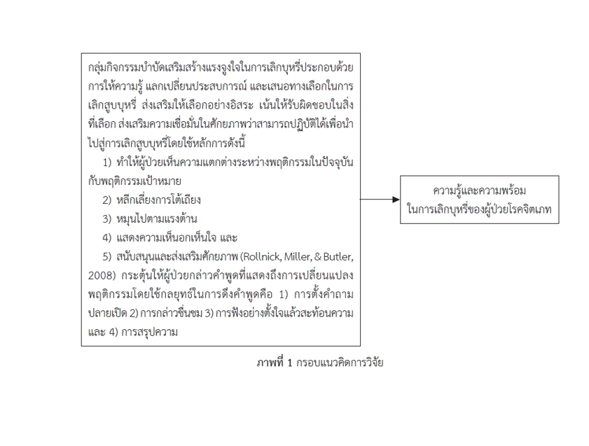 ผลของกลุ่มกิจกรรมบำบัดเสริมสร้างแรงจูงใจในการเลิกบุหรี่ต่อความรู้และความพร้อม ในการเลิกบุหรี่ สำหรับผู้ที่เป็นโรคจิตเภท