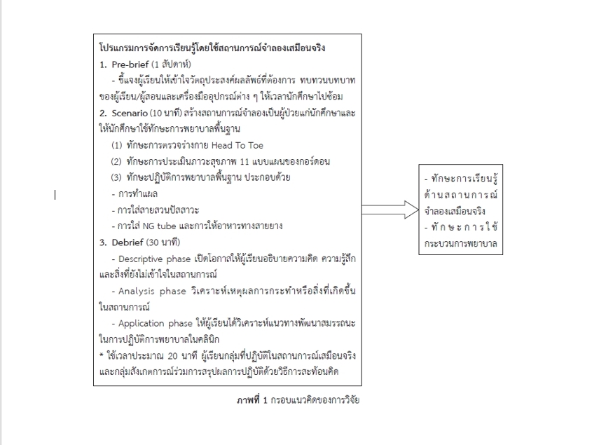 ผลของโปรแกรมการจัดการเรียนรู้โดยใช้สถานการณ์จำลองเสมือนจริงต่อทักษะการเรียนรู้ด้านสถานการณ์จำลองเสมือนจริงและทักษะการใช้กระบวนการพยาบาล ของนักศึกษาพยาบาล
