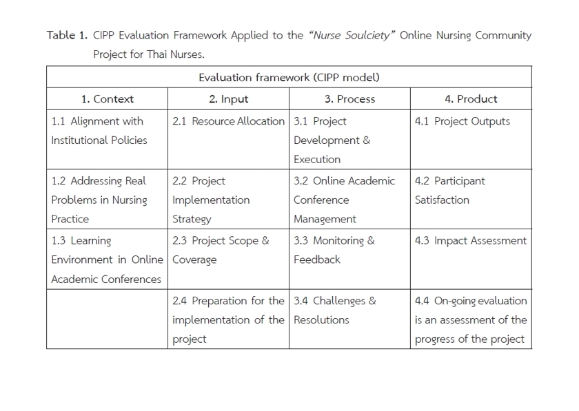 Evaluation of the “Nurse Soulciety” Online Nursing Community Project for Thai Nurses: A CIPP Model Analysis
