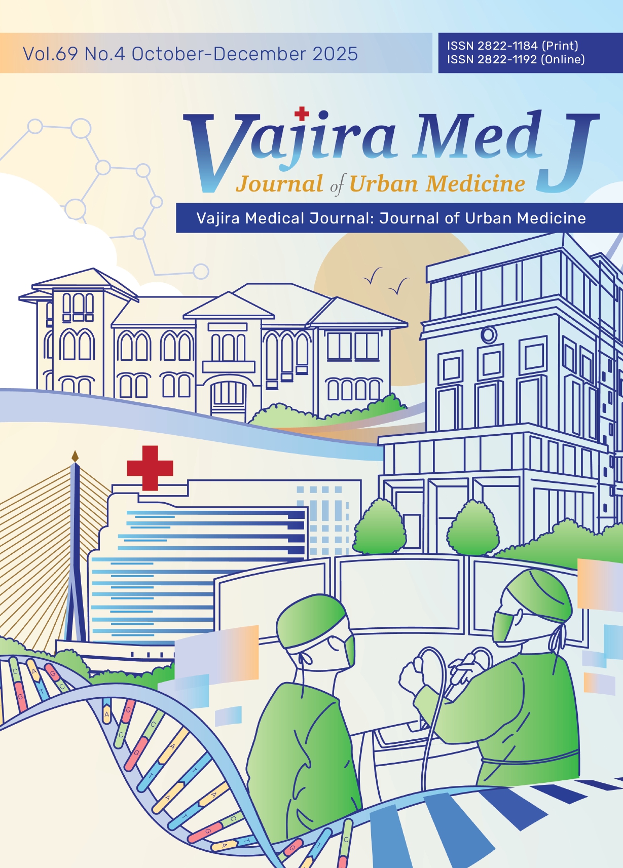 Vajira Medical Journal: Journal of Urban Medicine (Vajira Med J) is the official medical journal of the Faculty of Medicine Vajira Hospital, Navamindradhiraj University. The journal was established in 1957. It is a journal on medicine (especially urban medicine) and health science. This journal is dedicated to diseases and issues in order to improve the health and prosperity of all urban populations. The aim of this journal is to encourage authors to publish their experimental, theoretical and empirical researches relating to medicine (especially urban medicine) and health science. The manuscripts of experimental science research, health science research, technology and innovation will be considered for publication. It publishes original research articles, review articles, research notes, and case reports. Furthermore, it begins publishing four issues a year starting in 2023 (January-March, April-June, July-September and October-December).