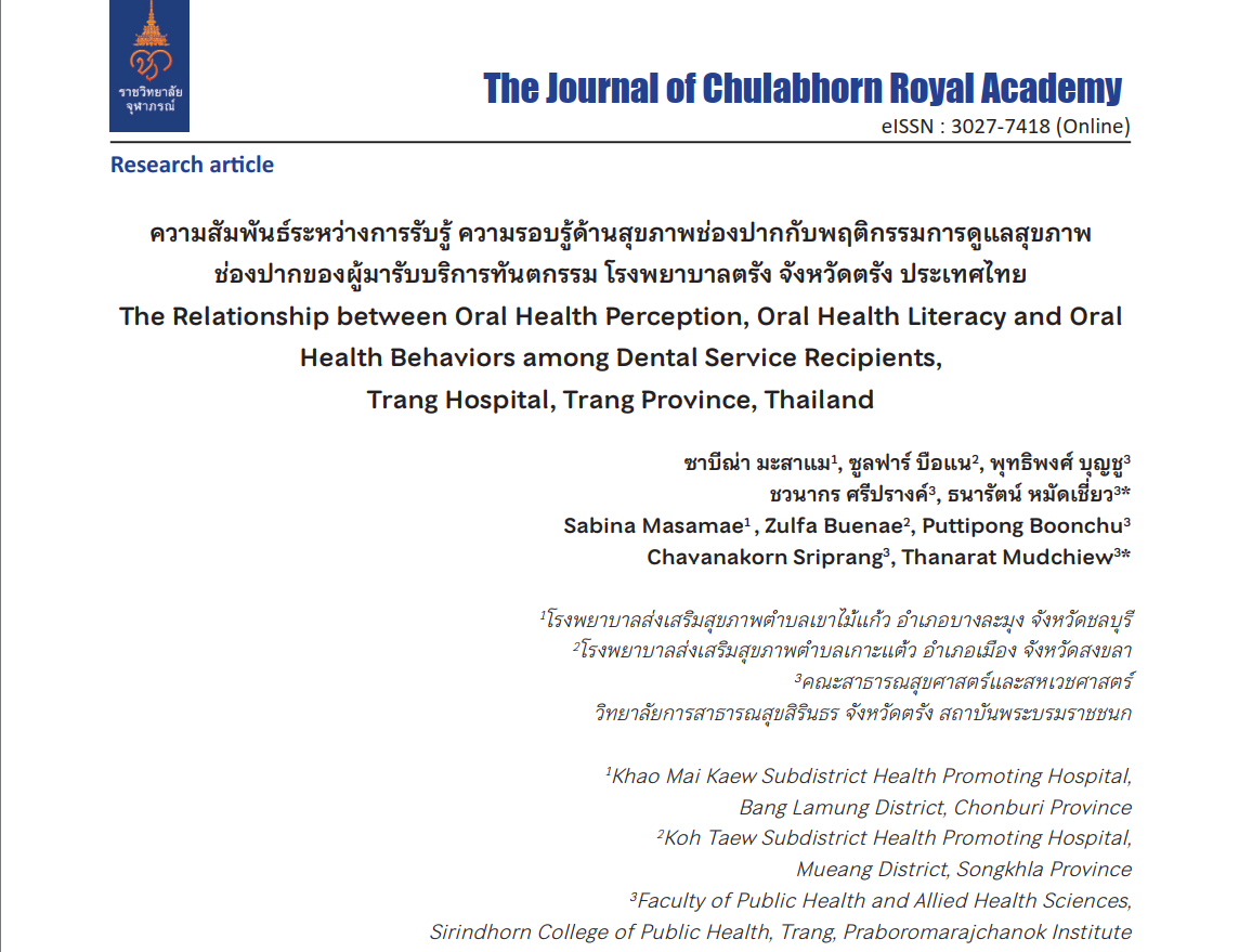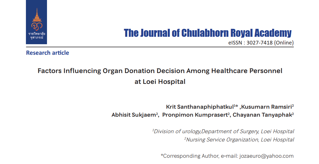 The Journal of Chulabhorn Royal Academy | ISSN: 3027-7418 (online) | Responsible editors: Professor Rajata Rajatanavin, M.D. | This journal is published under the terms of the Creative Commons Attribution 4.0 International (CC-BY-NC-ND 4.0) by Chulabhorn Royal Academy - 906 Kamphaeng Phet 6, Talat Bang Khen, Lak Si, Bangkok 10210 THAILAND.