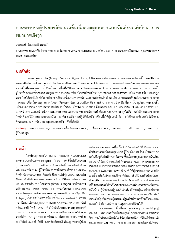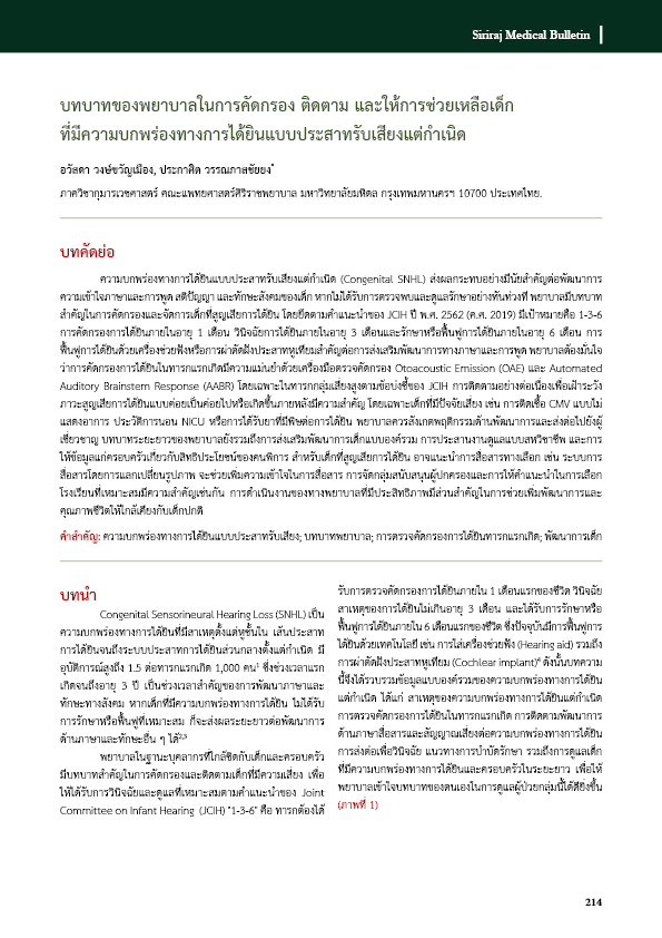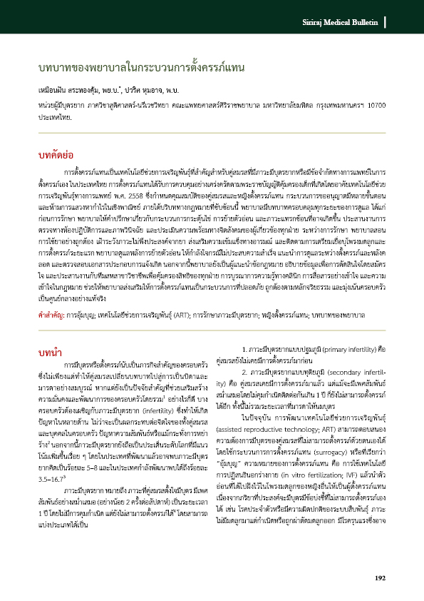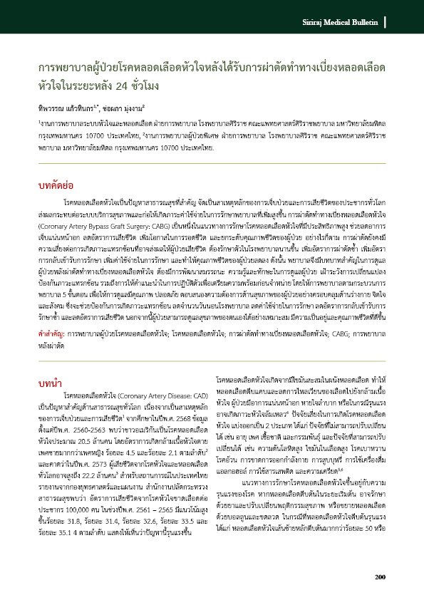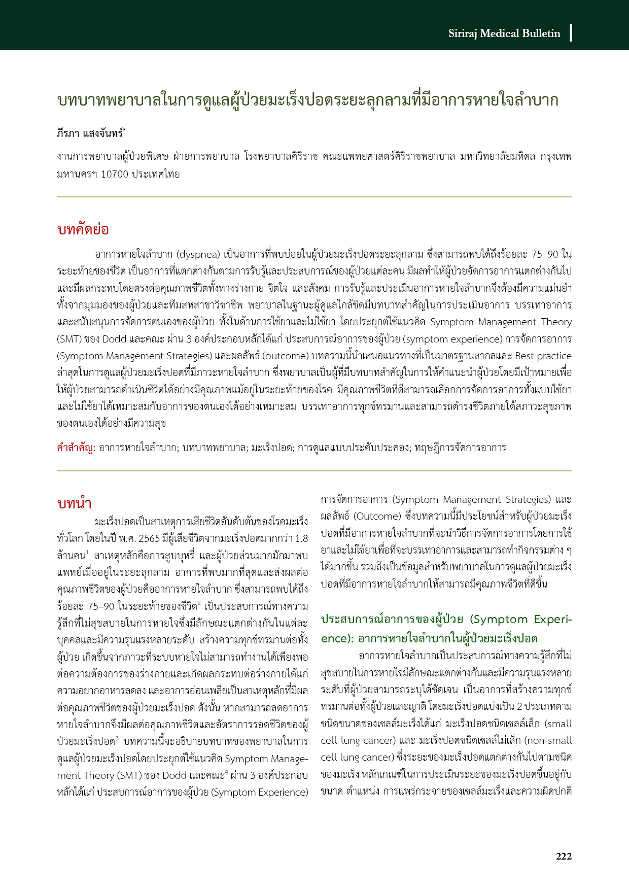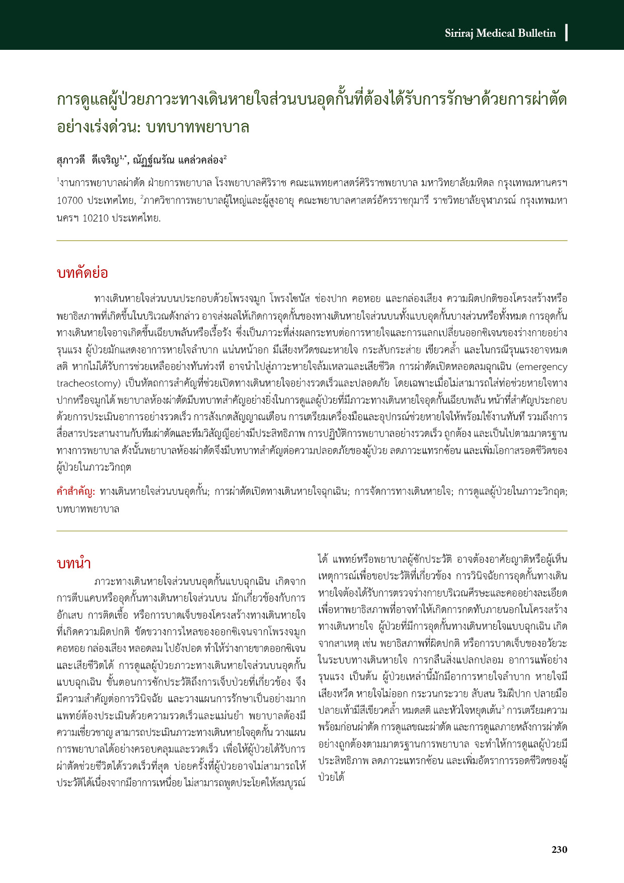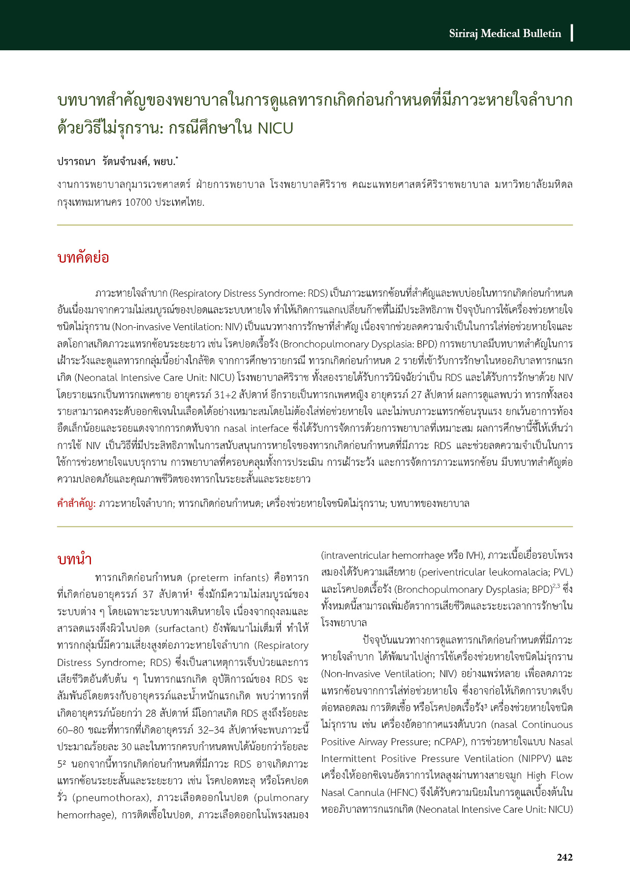 Special issue in collaboration with Department of Nursing, Siriraj Hospital, Mahidol University